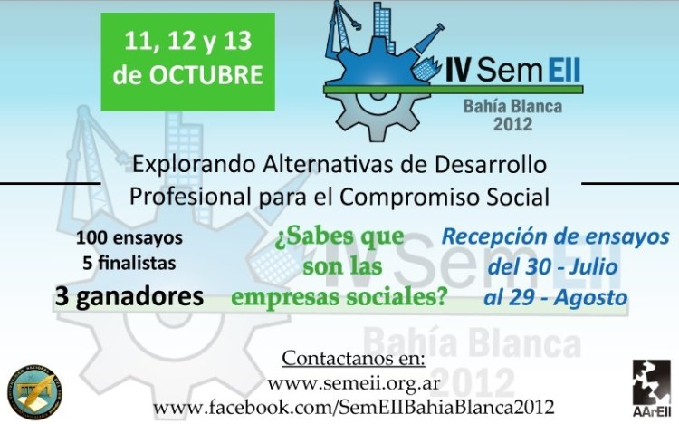 Visítalos en su página de facebook SemEII Bahía Blanca 2012 para seguir en contacto o realizar cualquier consulta.